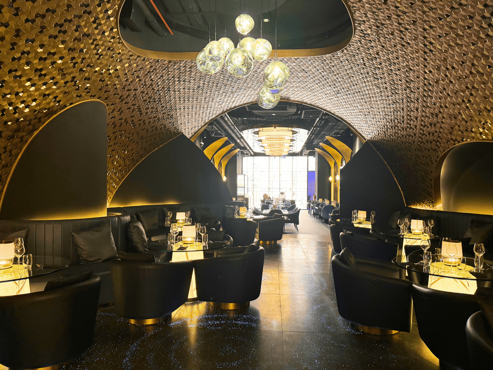 The design breaks with the traditional Chinese restaurant format, drawing inspiration from Eastern architectural structures and integrating historical civilizations and contemporary characteristics. Through all five senses, the restaurant offers a journey that evokes a collision of time and artistic civilization, a fusion of taste buds and Eastern poetry.