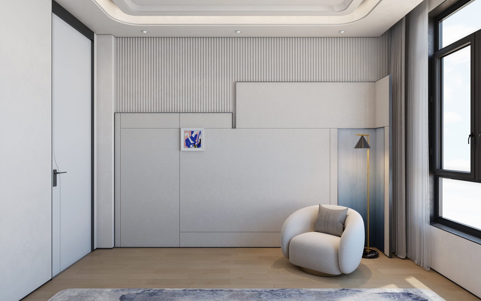 • TV Room: Minimalist wall design with bespoke detailing