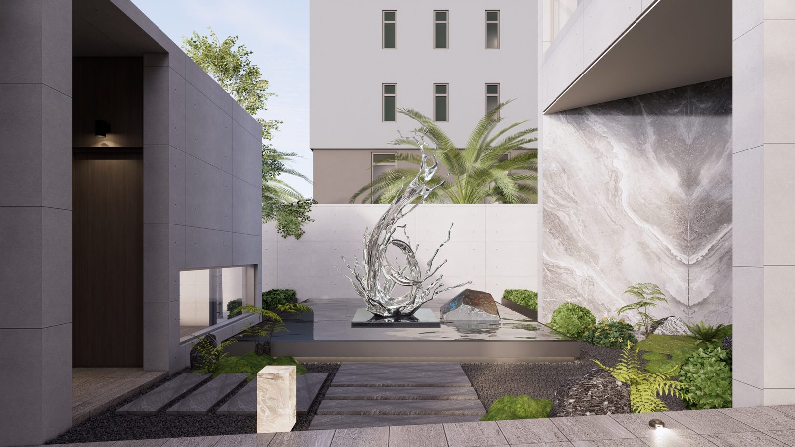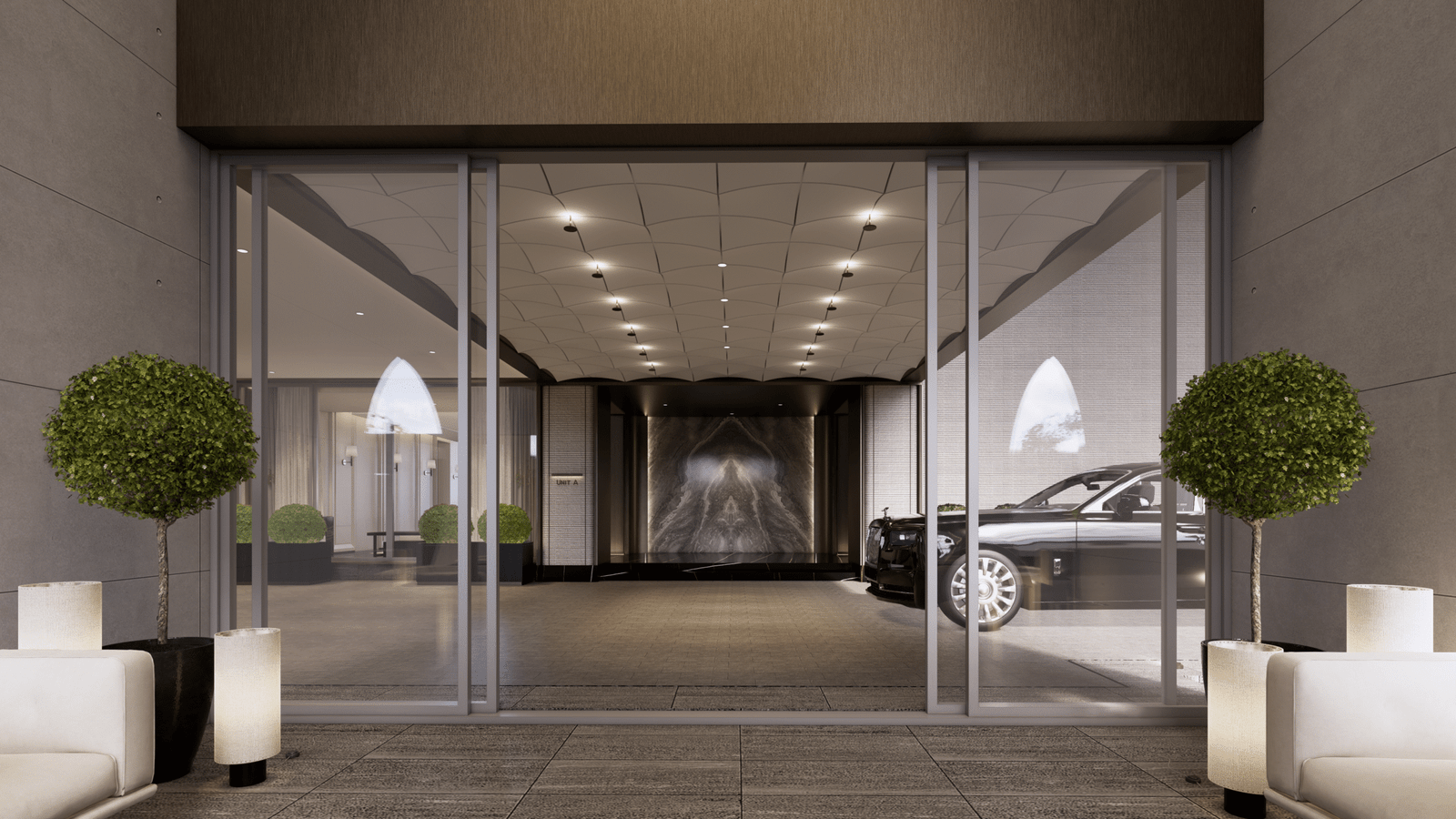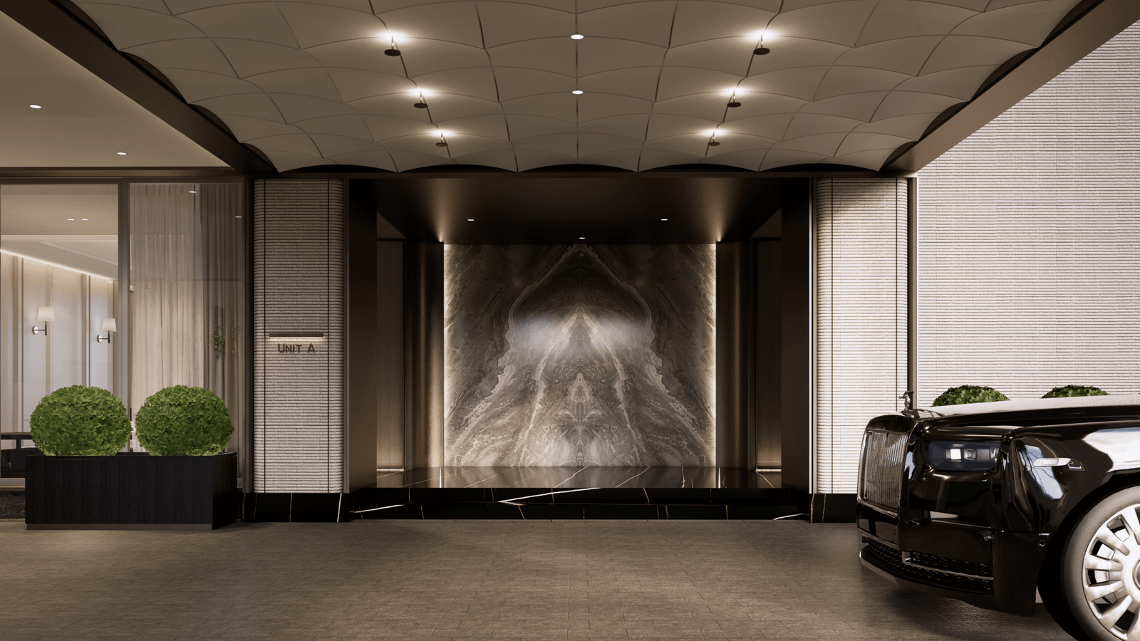 Sleek hallways feature marble flooring, textured wall panels, wooden cladding, and soft recessed lighting. Carefully placed benches, artwork, and lamps enhance both aesthetics and comfort while maintaining a minimalist luxury appeal.